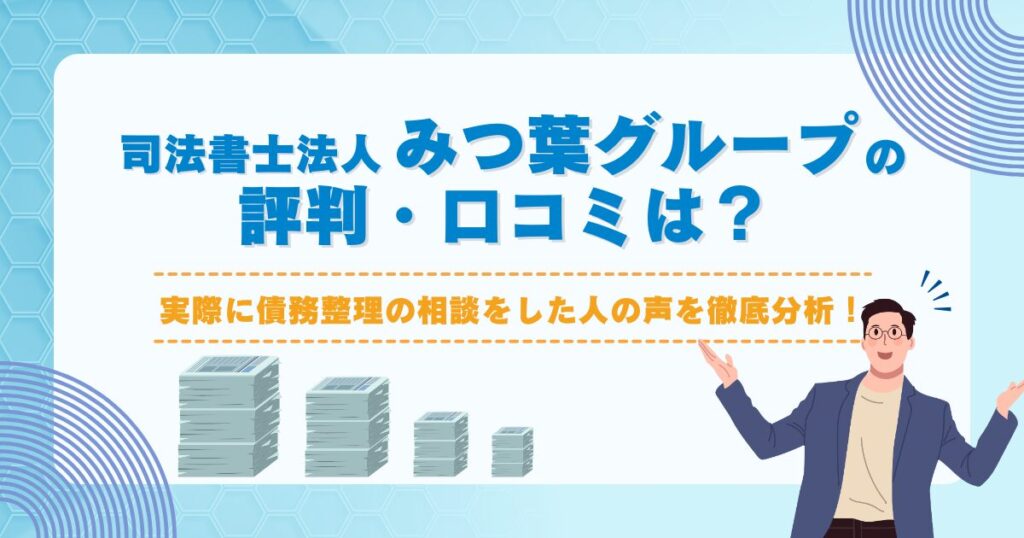 司法書士法人みつ葉グループの債務整理費用はいくら?内訳や他事務所との比較を徹底解説!
